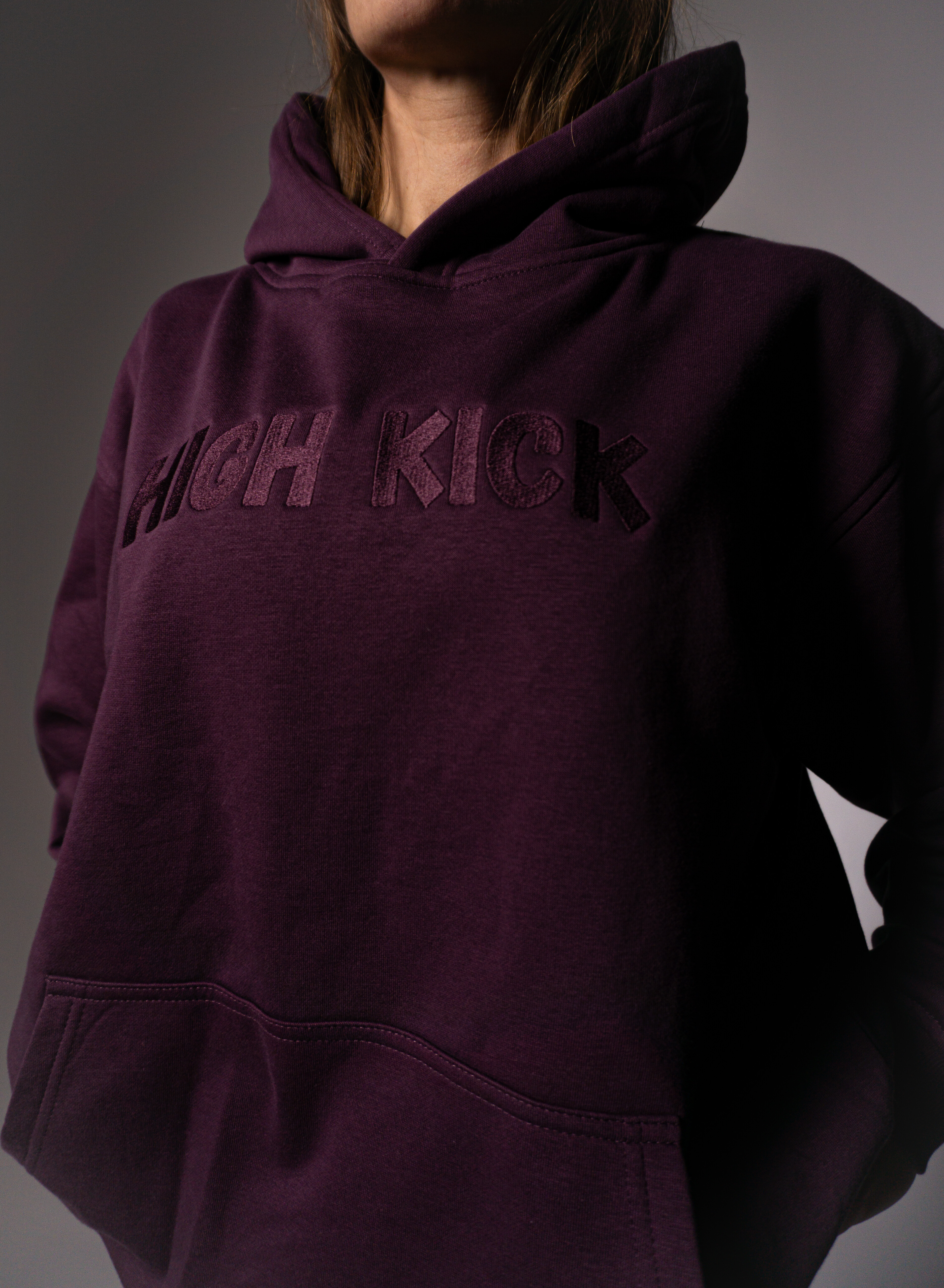 Bluza śliwka haft HIGH KICK to połączenie minimalistycznego stylu i maksymalnego komfortu. Uszyta z miękkiej, wysokogatunkowej bawełny, posiada obszerny kaptur i dużą kieszeń typu kangurka. Na przodzie haftowany napis HIGH KICK, który nadaje całości charakteru streetwearowego i sportowego zarazem. Idealna na co dzień, trening i chłodniejsze dni.