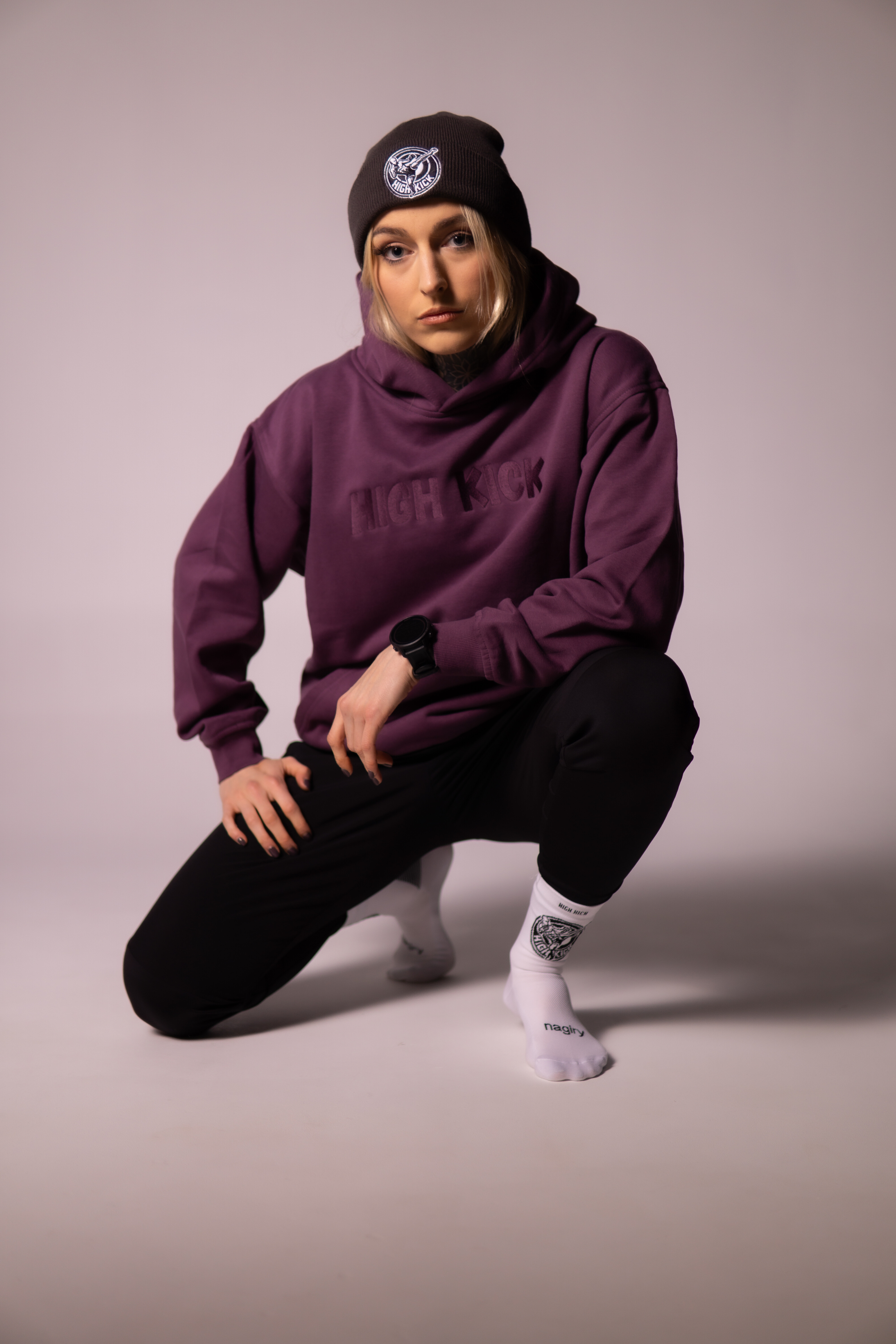 Bluza śliwka haft HIGH KICK to połączenie minimalistycznego stylu i maksymalnego komfortu. Uszyta z miękkiej, wysokogatunkowej bawełny, posiada obszerny kaptur i dużą kieszeń typu kangurka. Na przodzie haftowany napis HIGH KICK, który nadaje całości charakteru streetwearowego i sportowego zarazem. Idealna na co dzień, trening i chłodniejsze dni.