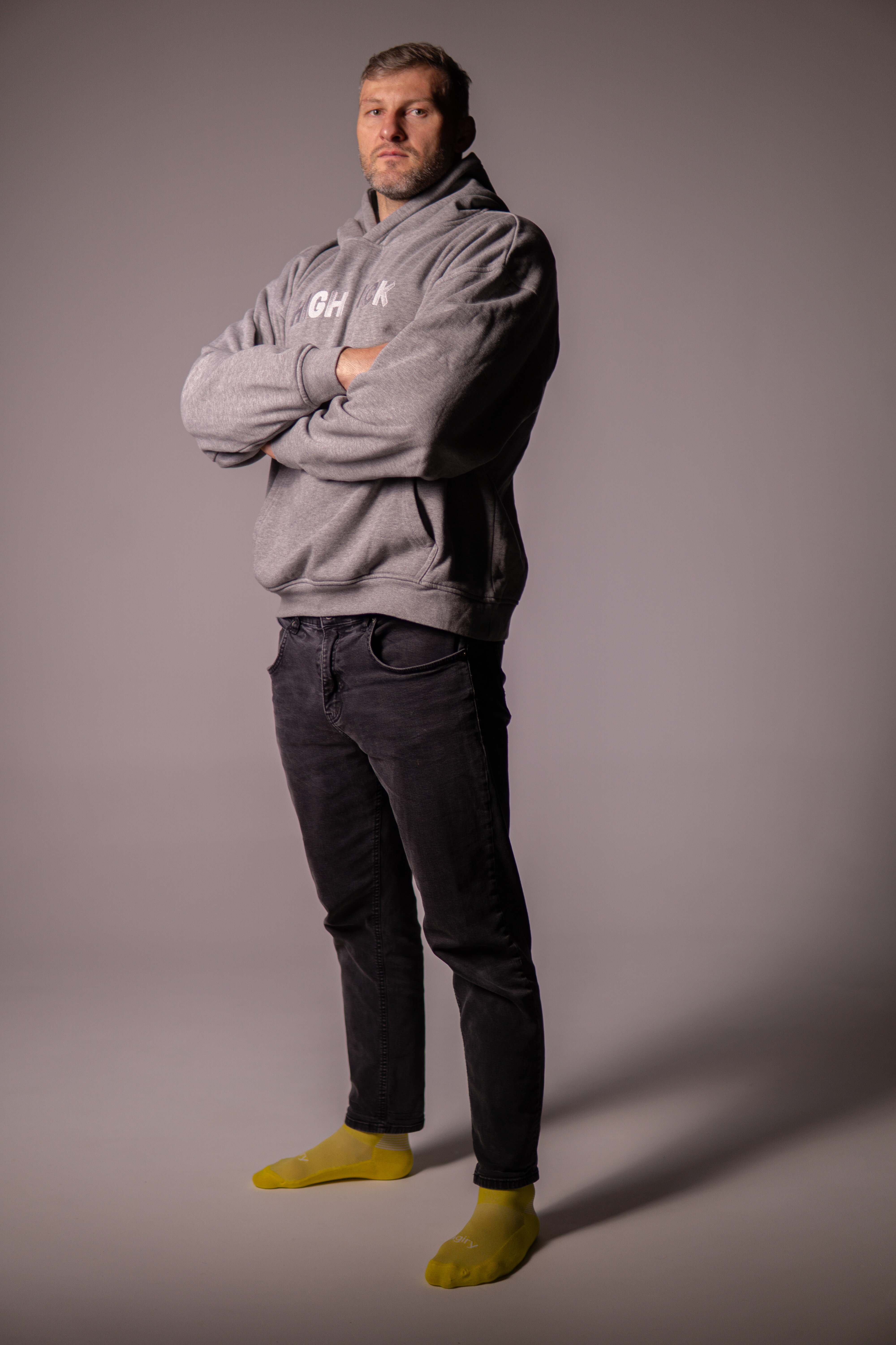 Bluza szara haft HIGH KICK to połączenie minimalistycznego stylu i maksymalnego komfortu. Uszyta z miękkiej, wysokogatunkowej bawełny, posiada obszerny kaptur i dużą kieszeń typu kangurka. Na przodzie haftowany napis HIGH KICK, który nadaje całości charakteru streetwearowego i sportowego zarazem. Idealna na co dzień, trening i chłodniejsze dni.